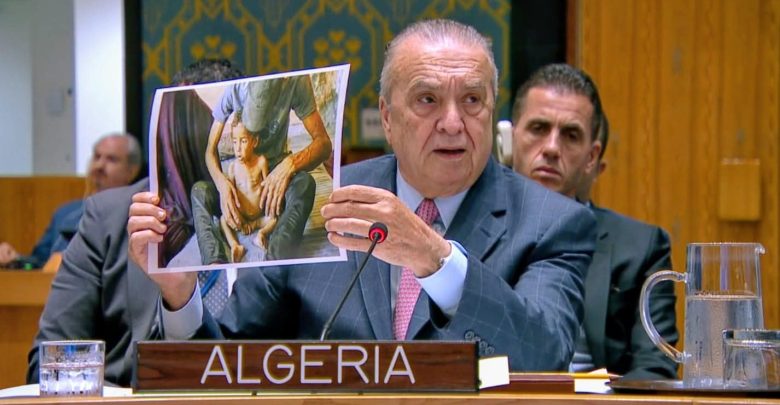 وقام الدبلوماسي الجزائري بربط العلاقة المباشرة بين الإبادة الجماعية والمجاعة التي يتعرض لها سكان غزة من جهة والاغتيالات التي تستهدف الصحفيين والتي تهدف الى منع إبراز الحقيقة.