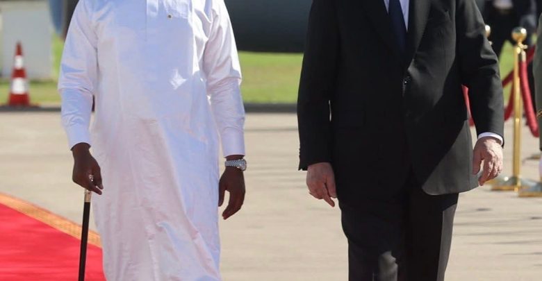 وقد استمع رئيس الجمهورية, رفقة نظيره التشادي, إلى النشيدين الوطنيين للبلدين قبل تحية العلم الوطني واستعراض تشكيلات من الحرس الجمهوري أدت لهما التحية الشرفية.