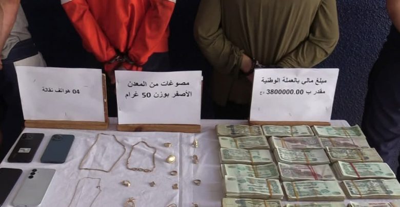التحريات التي قام بها عناصر المصلحة تحت اشراف وكيل الجمهورية المختص اقليميا مكنت من تحديد هوية المشتبه فيهم وتوقيفهم في ظرف وجيز أين تم استرجاع مسروقات تمثلت في (50) غ من المعدن الأصفر، مبلغ مالي بالعملة الوطنية يقدر ب : (380) مليون سنتيم و(04) هواتف نقالة.