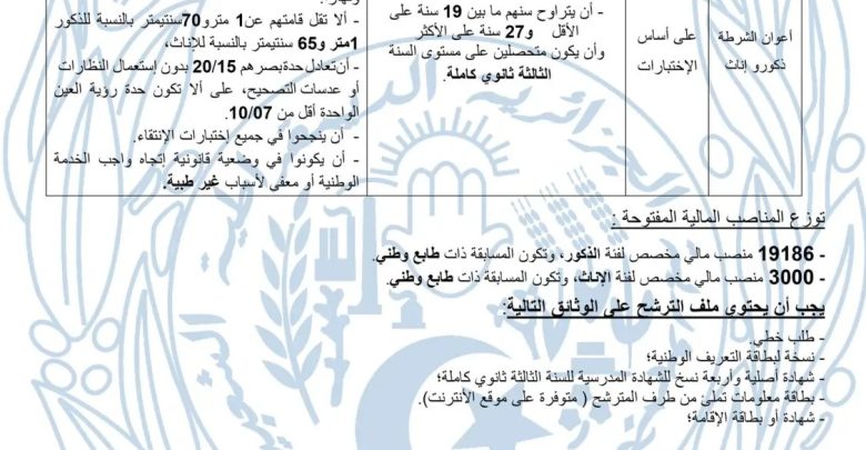 المديرية العامة للأمن الوطني: مسابقة لتوظيف وتكوين 22186 عون شرطة ذكور وإناث