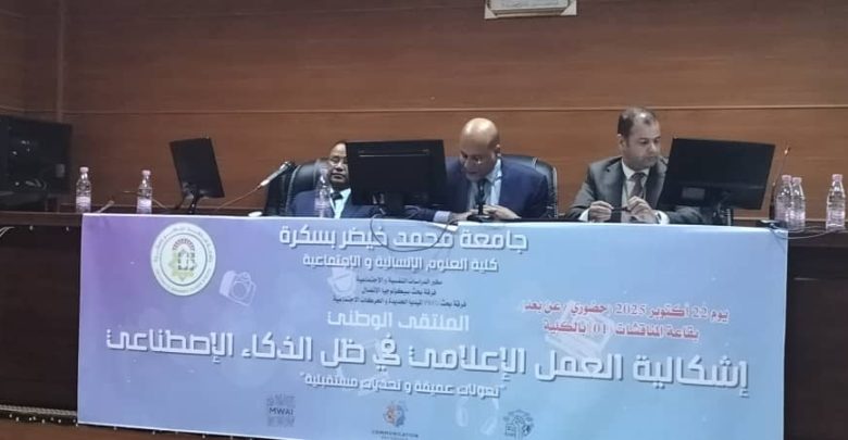 شاركت جامعة وهران 1 صبيحة اليوم، بمناسبة اليوم الوطني للصحافة المصادف ليوم 22 أكتوبر من كل سن، في أشغال ملتقى وطني احتضنته جامعة محمد خيضر ببسكرة، تحت عنوان: “إشكالية العمل الإعلامي في ظل الذكاء الاصطناعي: تحولات عميقة وتحديات مستقبلية، الواقع والرهانات”.