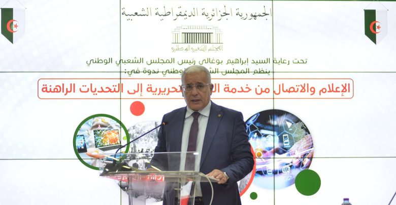 شدد رئيس المجلس الشعبي الوطني إبراهيم بوغالي، اليوم الاثنين، خلال الندوة الموسومة بعنوان: “الإعلام و الاتصال من خدمة الثورة إلى التحديات الراهنة بوغالي، على أن الإعلام يجب أن يكون اليوم جسرًا للتلاحم الوطني وفضاءً لتعزيز الوعي المجتمعي، والدفاع عن صورة الجزائر وإنجازاتها تمامًا كما كان بالأمس درعًا للثورة.