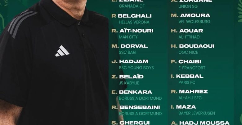 وكشف الناخب الوطني عن هذه القائمة خلال ندوة صحفية عقدها بقاعة المحاضرات “محمد صلاح” بملعب -نيلسون مانديلا- ببراقي (الجزائر العاصمة).