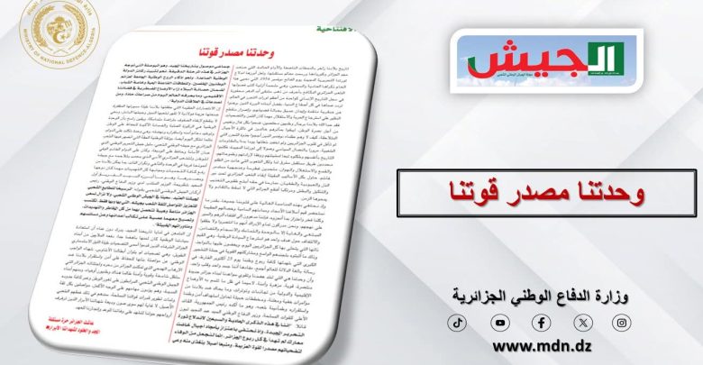 وجاءفي افتتاحية الجيش، الحرص بكل ثقة وثبات على مواصلة تطوير قدرات قواتنا المسلحة، بعد أن ركزت على العودة إلى ثنايا تاريخنا المجيد،