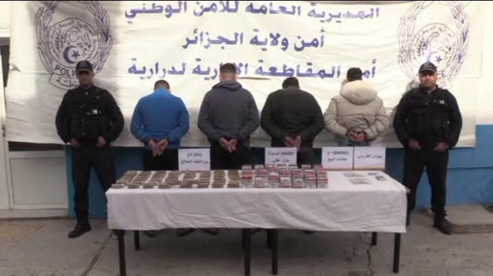 حجزت شرطة الدرارية بالعاصمة، 05 كلغ كيف معالج و8400 قرص مؤثر عقلي، عقب شل نشاط شبكة إجرامية تتكون من أربع (04) أشخاص ، مختصة في الإتجار غير المشروع في المخدرات والمؤثرات العقلية .
