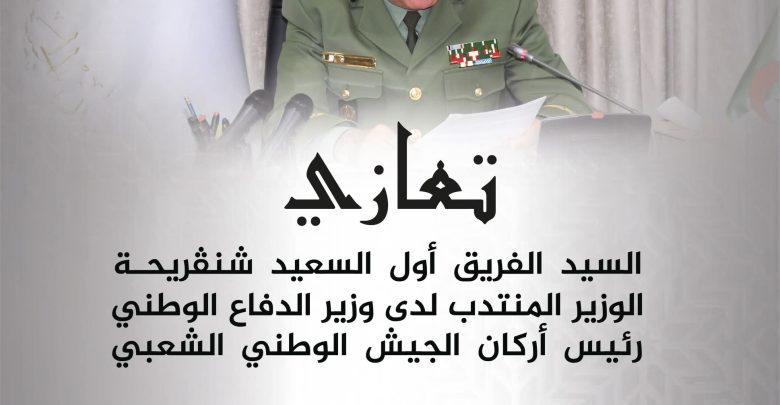 وجاء في نص التعزية: “على إثر وفاة المغفور له بإذن الله تعالى، العميد بن ديدة محمد، مفتش مديرية العلاقات الخارجية والتعاون لوزارة الدفاع الوطني، مساء يوم أمس الأربعاء 24 ديسمبر 2025, وذلك بعد مرض ألم به، يتقدم السيد الفريق أول السعيد شنقريحة، الوزير المنتدب لدى وزير الدفاع الوطني، رئيس أركان الجيش الوطني الشعبي، باسمه الخاص وباسم كافة مستخدمي الجيش الوطني الشعبي، بأصدق عبارات التعازي وخالص مشاعر المواساة لعائلة المرحوم، راجيا من الله تعالى أن يتغمد روح الفقيد برحمته الواسعة وأن يسكنه فسيح جناته مع الشهداء والصديقين الأبرار وأن يلهم عائلته وذويه جميل الصبر والسلوان في هذا المصاب الجلل. (إنا لله وإنا إليه راجعون)”.