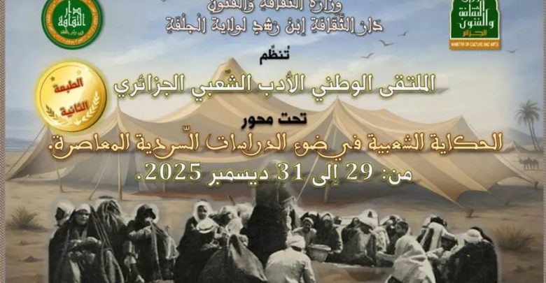 تنظّم ابتداء من يوم الغد ، بدار الثقافة “ابن رشد” في ولاية الجلفة ، فعاليات الملتقى الوطني للأدب الشعبي الجزائري، تحت عنوان “الحكاية الشعبية على ضوء الدراسات السردية المعاصرة” ، في طبعته الثانية .