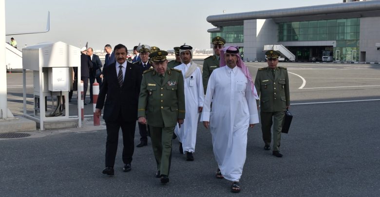 وفق بيان وزارة الدفاع الوطني:”كان في استقبال السيد الفريق أول لدى وصوله إلى مطار الدوحة الدولي، اللواء الركن حمد بن أحمد النعيمي، مستشار نائب رئيس مجلس الوزراء، وزير الدولة لشؤون الدفاع، إلى جانب سفير الجزائر لدى دولة قطر، السيد صالح عطية.