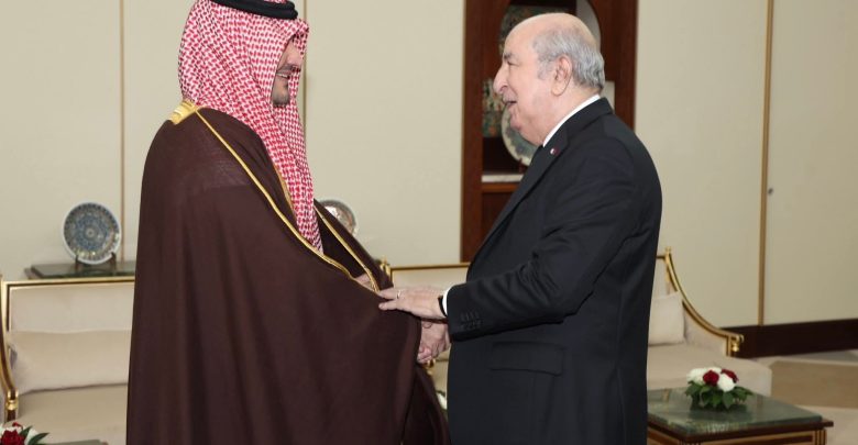 أفاد بيان رئاسة الجمهورية اليوم أن رئيس الجمهورية السيد عبد المجيد تبون، أجرى جلسة موسعة مع صاحب السمو الملكي الأمير عبد العزيز بن سعود بن نايف بن عبد العزيز آل سعود وزير الداخلية للمملكة العربية السعودية، والوفد المرافق له وهذا بعد استقباله.