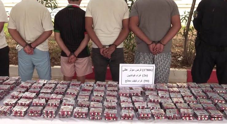 وبعد عملية تفتيش منازل المشتبه فيهم، تم حجز “17400 قرص مخدر صلب بوزن 6.200 كلغ، 325 مليون سنتيم من عائدات ترويج السموم وأربع سيارات سياحية تستعمل في نقل السموم، حسبما جاء في البيان نفسه.