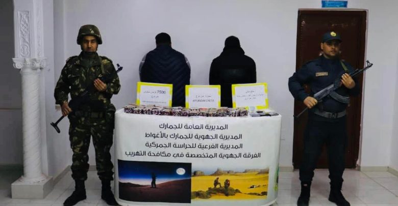 تمكن أعوان الفرقة المتنقلة بالجلفة ، بالتنسيق مع أفراد الجيش الوطني الشعبي والفرقة الجهوية المتخصصة في مكافحة التهريب بالأغواط ، إقليم اختصاص المديرية الجهوية للجمارك بالأغواط ، من حجز كمية من الأقراص المهلوسة قدرت ب 7500 قرص من نوع بريقابالين 300 ملغ ، على متن سيارة سياحية ، حسب بيان المديرية العامة للجمارك اليوم.