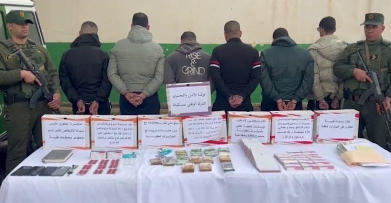 إستكمالا للتحقيق وبعد تنشيط عنصر الإستعلامات وإستفاء الإجراءات القانونية اللازمة تم توقيف جميع عناصر الشبكة الإجرامية، حيث مكنت العملية من توقيف 06 أشخاص من بينهم صيدلي وطبيب، بالإضافة إلى حجز مركبة نفعية ومبلغ مالي بالعملة الصعبة يقدر بـ 64300 أورو ومبلغ مالي بالعملة الوطنية مقـدر بـ 142.000 دج، حجز كمية من المؤثرات العقلية مختلفة الأنواع مقدرة بـ 118 كبسولة ومواد صيدلانية منتهية الصلاحية، حجز 288 وصفة طبية محررة و 04 هواتف نقالة.