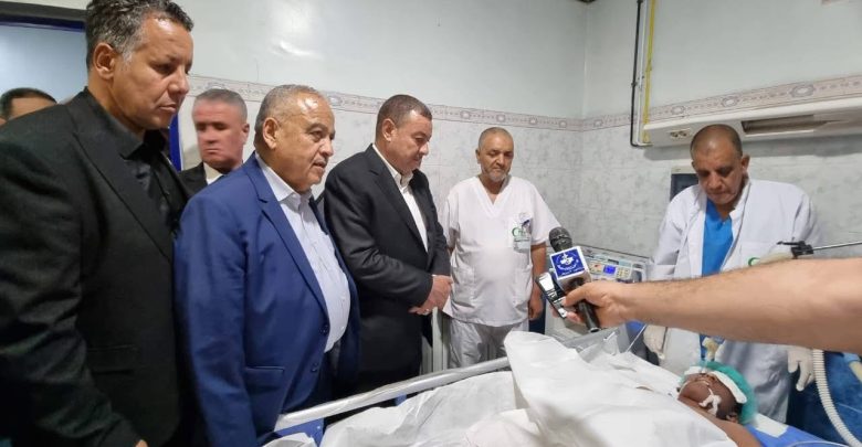 ورافق الوزير، الأمين العام لوزارة الداخلية والجماعات المحلية والتهيئة العمرانية، والأمين العام لوزارة الصحة والسكان، لتأدية واجب العزاء لعائلات الضحايا بمنازلهم، وزيارة الجرحى بمستشفى البيض.