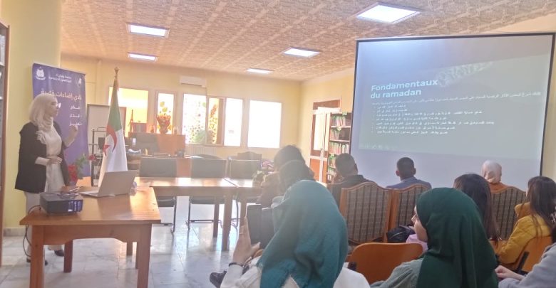 اللقاء الصحي الموسوم تحت شعار “صحتنا في نظام غذائنا المتوازن”، نظمه نادي اضاءات فكرية بالتنسيق مع شبكة البيئة و المواطنة و ناديGrowing minds, و اوضحت لنا الدكتورة مريوة حفيظة المشرفة على نادي اضاءات فكرية على هامش الفعالية أن الهدف من هذا اللقاء هو نشر الوعي الصحي لدى الطلاب و الأساتذة و تقديم إرشادات على الأسس السليمة للتغذية في شهر رمضان المبارك من اجل اتباع نظام غذائي صحي متكامل يشمل كل العناصر الضرورية للجسم لكي يتحصل الصائم على المركبات الغذائية الضرورية في ظل غياب ثقافة غذائية في المجتمع الجزائري مما ادى الى تبني نمط حياة في التناول العشوائي لعدة مواد غذائية على غرار المقليات و المشروبات الغازية و أطعمة تحتوي مضافات كيميائية كالملونات والمواد الحافظة و المنكهات في شهر رمضان.