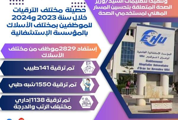 2829 مستخدم استفادوا من الترقية بالمؤسسة الإستشفائية الفاتح نوفمبر بوهران
