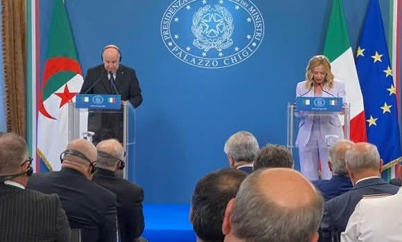 وفي تصريح صحفي مشترك مع رئيسة مجلس الوزراء الإيطالي, جورجيا ميلوني, أوضح رئيس الجمهورية أن الدورة الخامسة للقمة الحكومية الجزائرية-الإيطالية رفيعة المستوى, أوضح رئيس الجمهورية أنها تأتي لـ”تجسد خطوات عملية تعبر عن إرادة سياسية راسخة لتقوية علاقاتنا التاريخية ولمد المزيد من جسور التعاون, ليشمل قطاعات واعدة منها الموارد المائية و الزراعة المستدامة والصناعة والنقل والتنوع الثقافي والعلمي”.