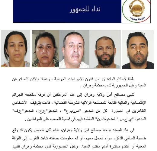 أكمل القراءة »ق.إلياس وجهت شرطة وهران ممثلة في فرقة مكافحة الجرائم الإقتصادية والمالية التابعة للمصلحة الولائية للشرطة القضائية، اليوم الأربعاء، نداء آخر عن…