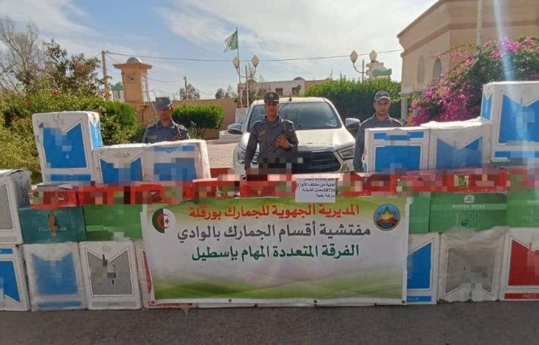 أكمل القراءة »ق۔إلياس منع أعوان الفرقة المتعددة المهام للجمارك بأسطيل التابعة لمصالح مفتشية الأقسام للجمارك بالوادي، تهريب 59500 علبه سجائر من مختلف…