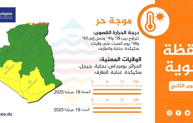 أكمل القراءة »ق.إلياس أفادت نشرية جوية اليوم الخميس، عن موجةحر أصل درجات الحرارة فيها آلة غاية يوم السبت 46 درجة. الولايات المعنية…