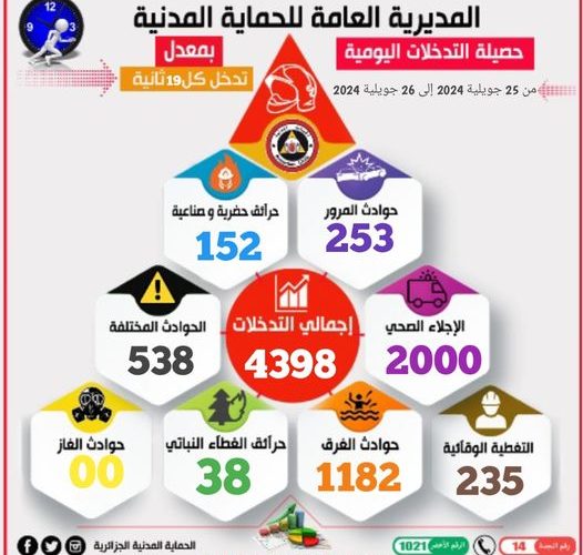 أكمل القراءة »ارتفع عدد تدخلات الحماية المدنية، خلال 24 ساعة الأخيرة، إلى 4398 تدخل بمعدل تدخل كل 19 ثانية. وخلفت حوادث الطرقات…