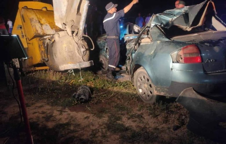 خلف اصطدام بين سيارة و آلة خلط الخرسانة ، متوفى من جنس ذكر يبلغ من العمر 24 سنة و 05…
