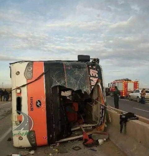 حـــادث مرور خطير يتسبب في وفاة 9 أشخاص و اصابة 41 جريح بإصابات متفاوتة الخطورة، اثر انقلاب حافلة نقل مسافرين…