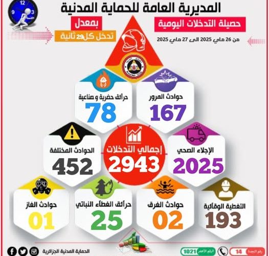 م.ر لقي شخص حتفه مباشرة بعد إصابته بصعقة كهربائية بولاية تلمسان و تدخلت مصالح الحماية المدنية على الساعة 11سا55د من…