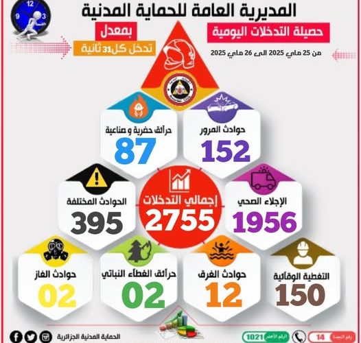 أكمل القراءة »س ب لقي 04 أشخاص مصرعهم و أصيب 176 آخرون في حوادث مرور سجلت بعدد من ولايات الوطن خلال…