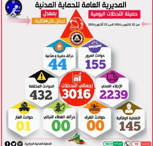 أكمل القراءة »ق۔إلياس وصلت حصيلة تدخلات الحماية المدنية في ظرف 24 ساعة الماضية 3016 تدخل بمعدل تدخل كل 28 ثانية، وبالنسبةلحوادث المرور…