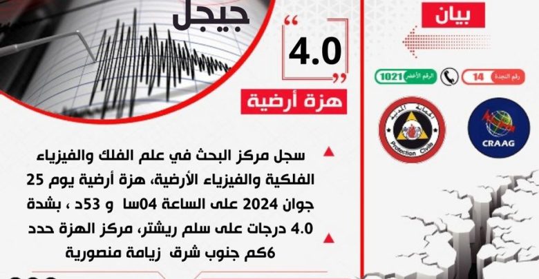 جيجل تسجل هزة أرضية بشدة 4.0 درجات على سلم ريشتر