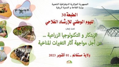 م.ر تنطلق غدا الأحد بولاية مستغانم، فعاليات الطبعة الثلاثين لليوم الوطني للإرشاد الفلاحي تحت شعار “الابتكار والتكنولوجيا الزراعية من أجل…
