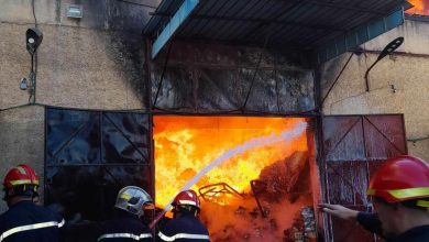 حريق محل تجاري للبيع بالجملة مخازن سلع إثر حريق في تلمسان