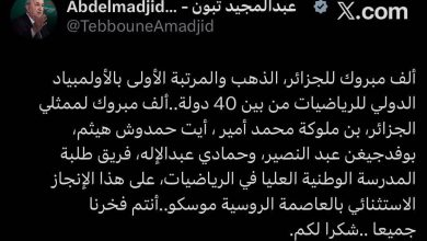 ح.ن هنأ رئيس الجمهورية السيد عبد المجيد تبون اليوم عبر حسابه الشخصي، المتوجين بالأولمبياد الدولي للرياضيات من بين 40…