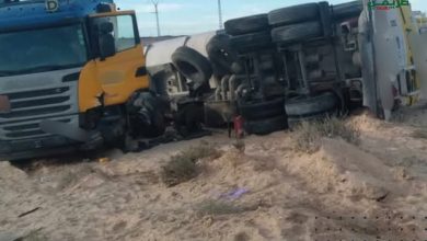 مصرع شخص في حادث اصطدام بين سيارة و شاحنة في المغير