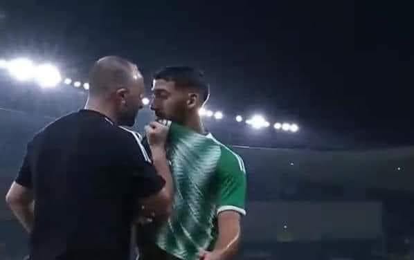 وأمسك بلماضي بن رحمة بقوة من قميصه عندما قام باستبداله كما ان الجميع بات ينتظر رد الناخب الوطني على تصرفه وهل كان لعدم رضاه على مستوى لعب قلب الهجوم.
